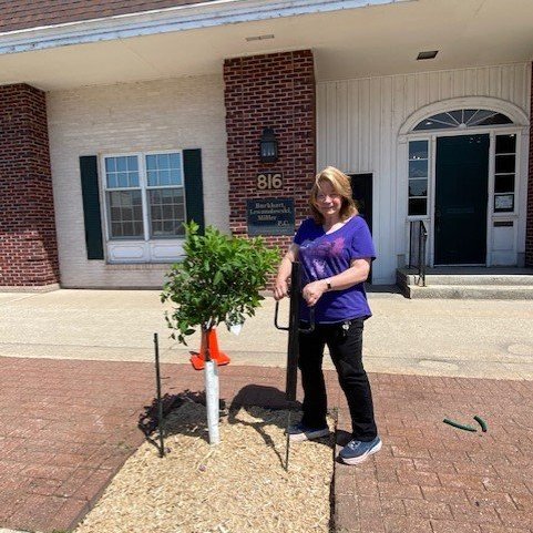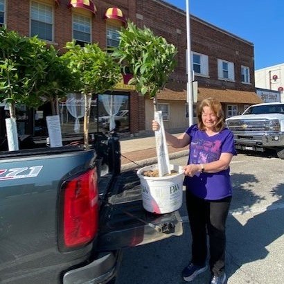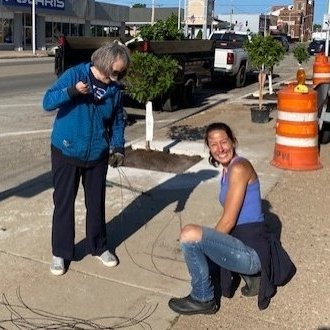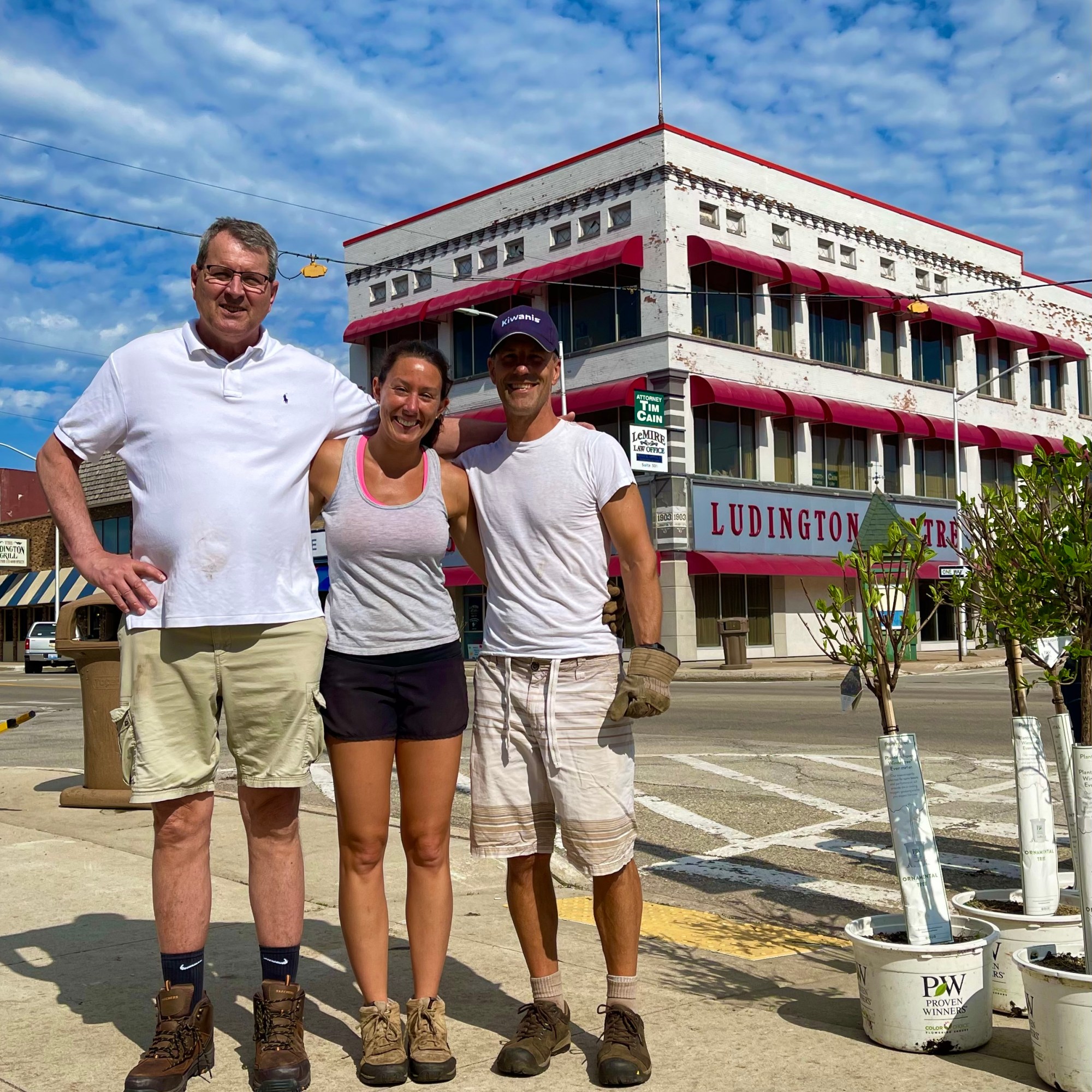 A bicyclist stopped to chat with some of the volunteers. He said how much he enjoyed the transformation of Ludington Street with the addition of the hydrangea trees. His comment was the best of the day, saying, “It makes downtown smile”.